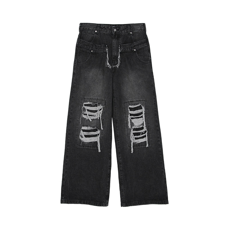 Loose Straight Hole Wide Leg Trousers Casual Floor Trousers
